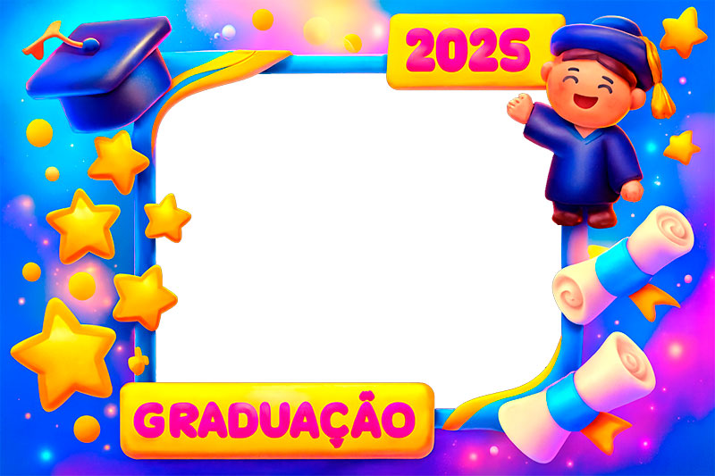 Arte Digital de Moldura Graduação 2025 para Foto Montagem em PNG, pronta para ser impressa em alta resolução e em excelente qualidade.